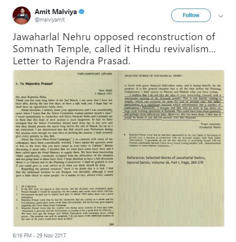 Now, it seems to have launched a two-pronged attack on the Nehru-Gandhi family. In addition to questioning Rahul Gandhi’s faith, it is also questioning the Nehru-Gandhis’ past – in particular, Jawaharlal Nehru’s alleged objections to the reconstruction of the Somnath Temple.