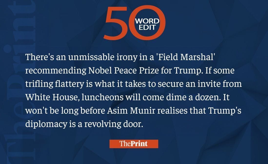 Deep irony in Asim Munir recommending Nobel Peace for Trump. Is flattery all it takes?