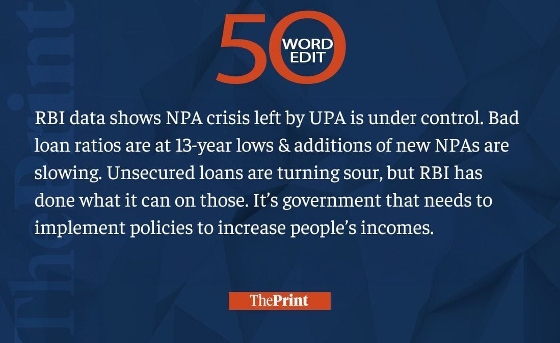 RBI data shows NPA crisis is under control. Now, govt needs to increase incomes