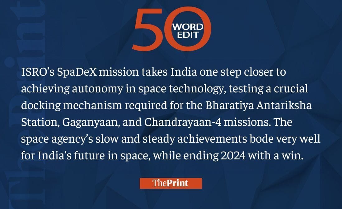 This week, ISRO launched its SpaDeX mission, Hindutva groups disrupted Christian gatherings in Haryana, and Manipur’s Chief Minister Biren Singh issued an apology for violence in the state. Read our 50-word editorials on these developments and more.