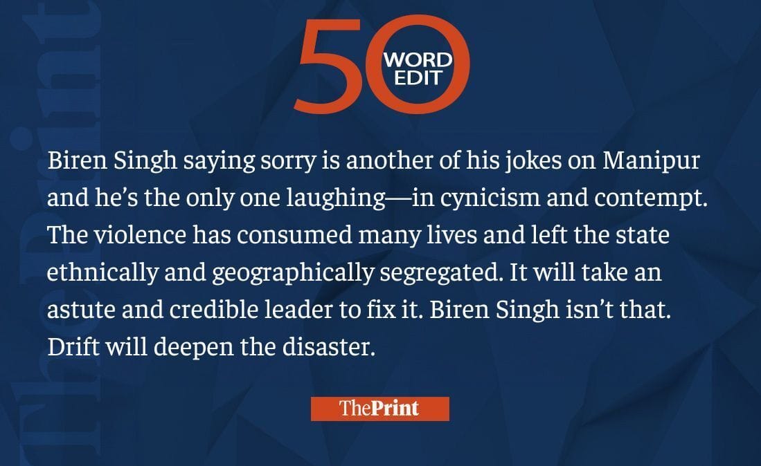 Biren Singh’s apology was a serious and heartfelt one. Am sure The Print would have praised and supported him if he had been a Congress CM.