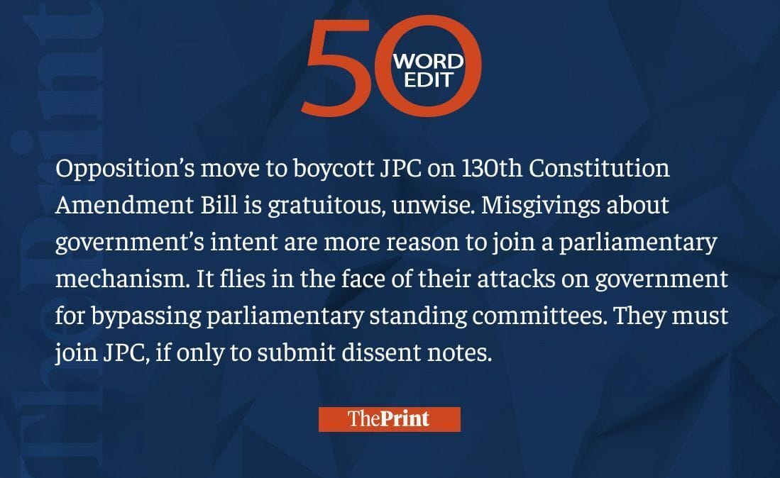 Opposition must join JPC on 130th Constitution Amendment Bill—if only to submit dissent notes