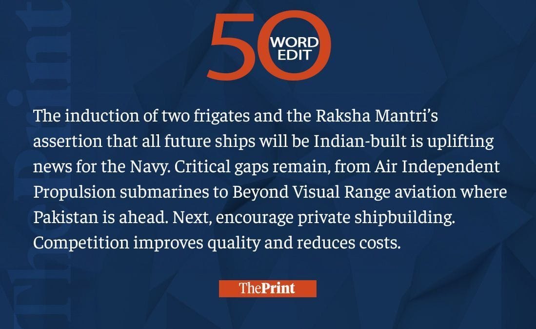 Pledge for only Indian-built ships is uplifting news for Navy. Now encourage private shipbuilding