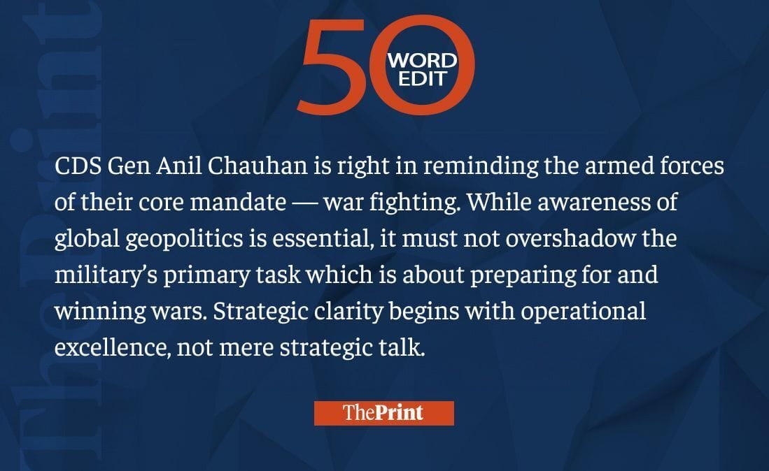 CDS Gen Anil Chauhan is right in reminding armed forces of their core mandate