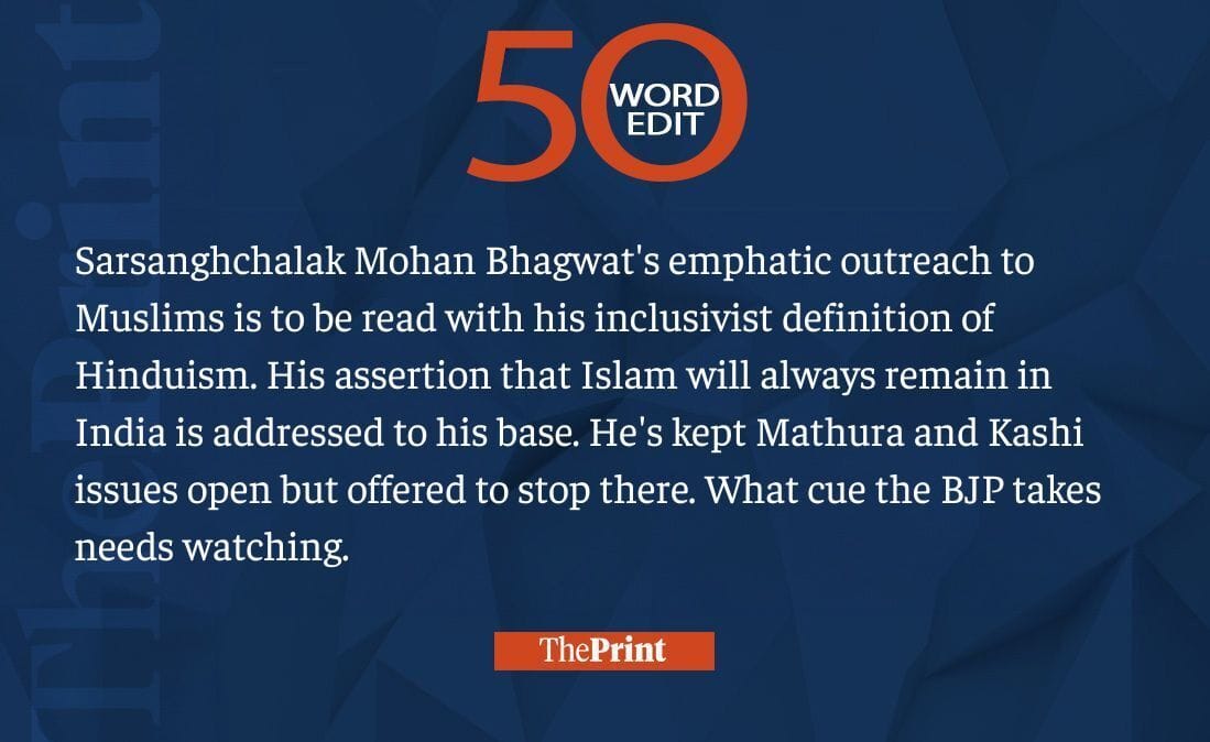 Bhagwat’s assertion about Islam’s place in India is addressed to his base. Wait for BJP to respond