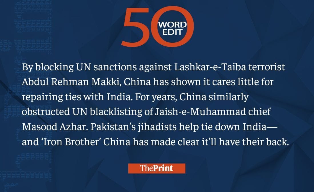 China blocking sanctioning LeT terrorist tells India it doesn’t care about repairing ties
