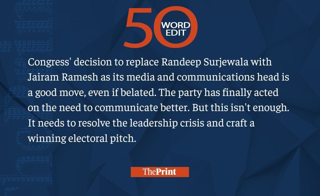 Congress replacing Randeep Surjewala with Jairam Ramesh is a good move. But it’s not enough
