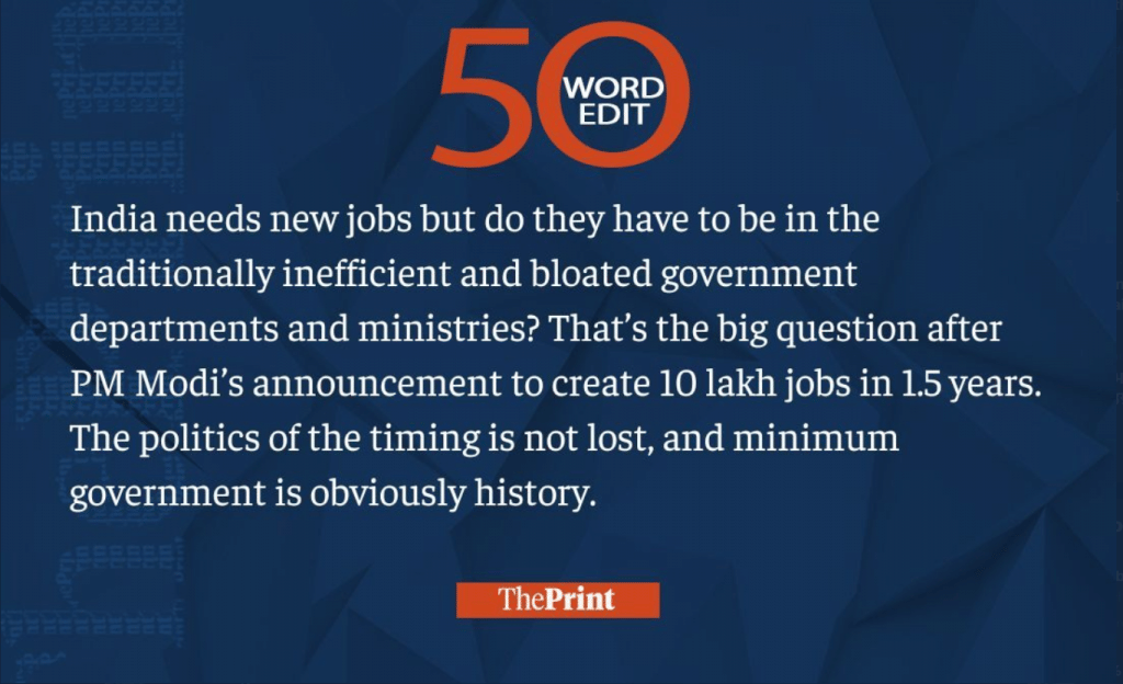 India needs new jobs but govt ministries are bloated. Political timing isn’t lost