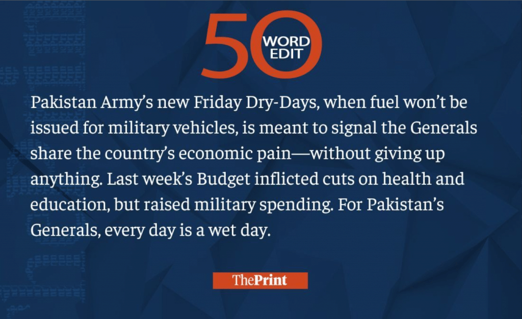 Pakistan Army’s ‘dry-days’ don’t mean much. Budget shows it’s always a ‘wet day’ for Generals