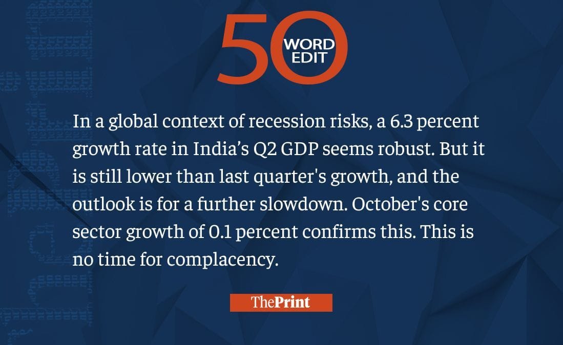 India’s 6.3% growth rate when world faces recession risk seems robust. But don’t get complacent