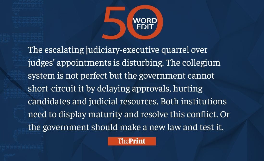 Collegium system not perfect but govt can’t short-circuit it. Work it out with court or test a new law