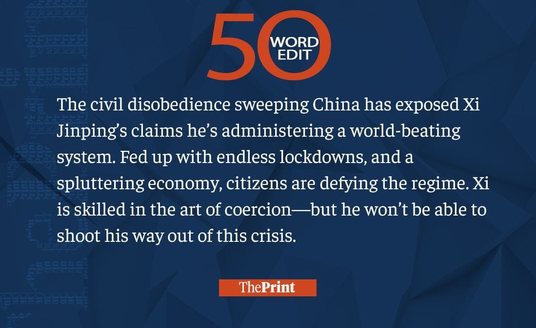 Xi skilled in coercion but won’t be able to shoot his way out of the ongoing protest