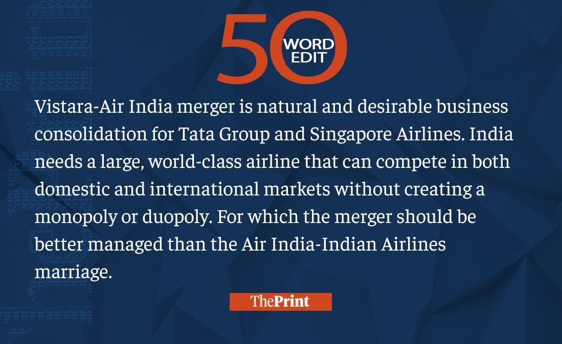 Vistara-Air India desirable for India. Manage it better than Air India-Indian Airlines merger