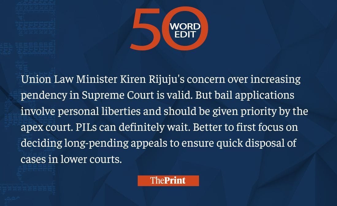 Rijiju’s concern over pendency in SC valid. But bail needs attention, PILs can wait