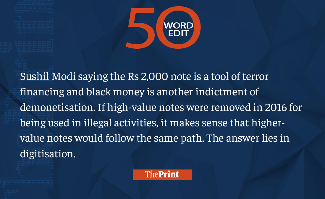 It makes sense that Rs 2,000 note would follow terror financing path. Digitisation is key