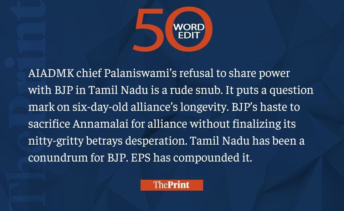 AIADMK chief’s refusal to share power with BJP puts a question mark on the alliance