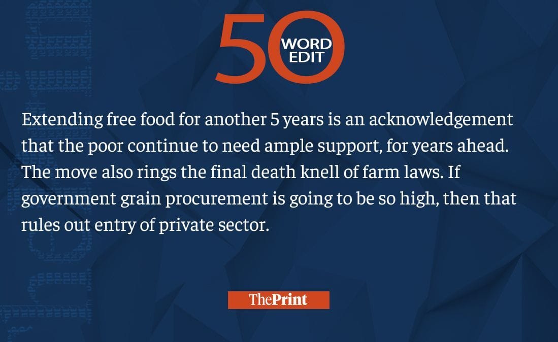 Govt extending free food is death knell on farm laws. It rules out private sector entry