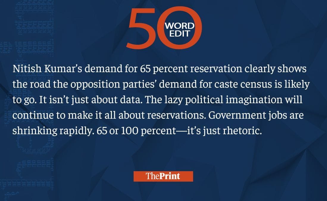 Nitish Kumar’s 65% reservation demand makes no difference. There are no govt jobs