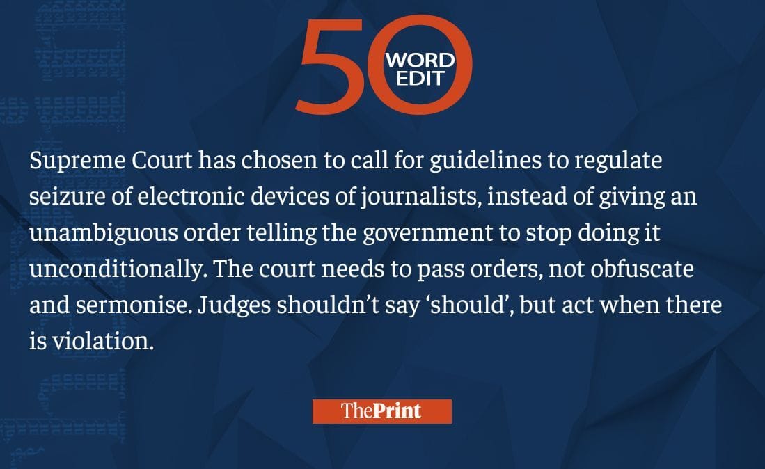 SC needs to pass an order on seizure of devices from journalists. Act, not sermonise