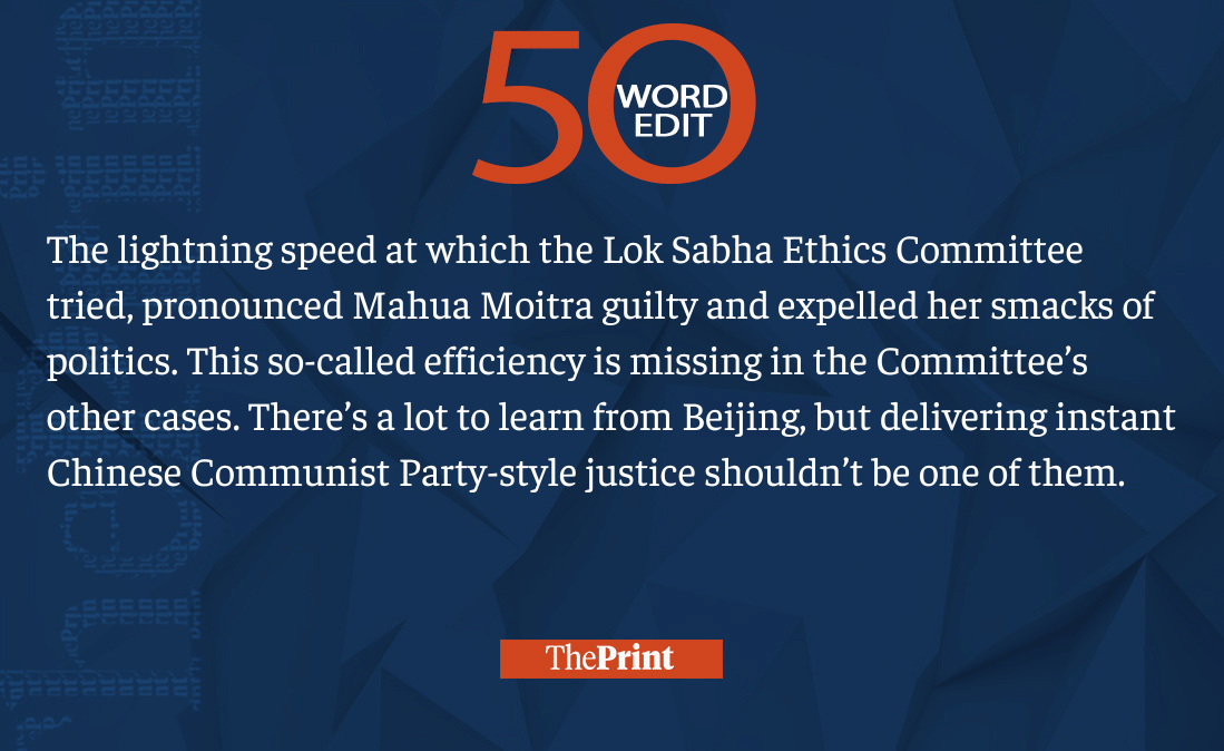 This week we saw Mahua Moitra’s CCP-style expulsion, Panchjanya’s alarmist editorial, Nitish Kumar’s remark on population control, Bangladeshi cricketer Angelo Mathews’ dismissal. Read our 50-word editorials on them and much more.
