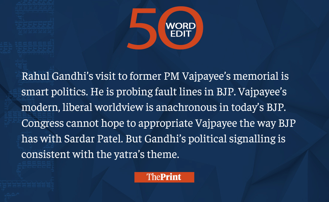 Rahul Gandhi’s visit to Vajpayee’s memorial is smart politics. It probes fault lines in BJP