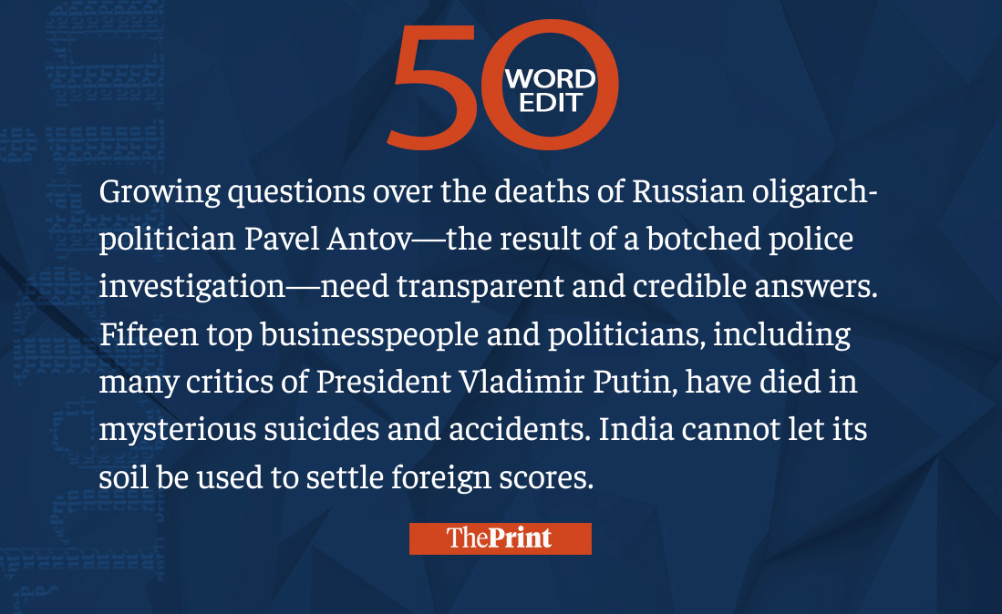 Questions over Russian deaths need better answers. India no place to settle foreign scores