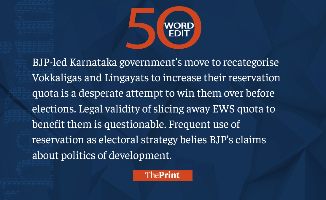 Karnataka govt’s move to slice away EWS quota belies BJP’s politics of development