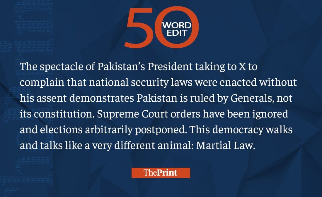 Pakistan President complaining on X shows the democracy is turning to martial law