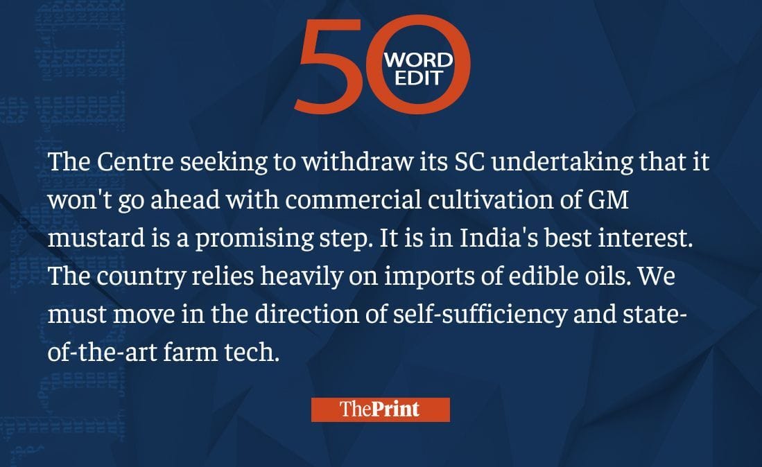 Centre withdrawing the self-imposed restraint on GM mustard’s cultivation is in India’s best interest