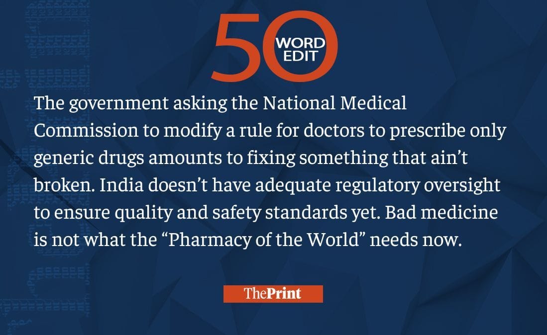 NMC asking doctors to prescribe generic medicines but India doesn’t need ‘bad medicine’
