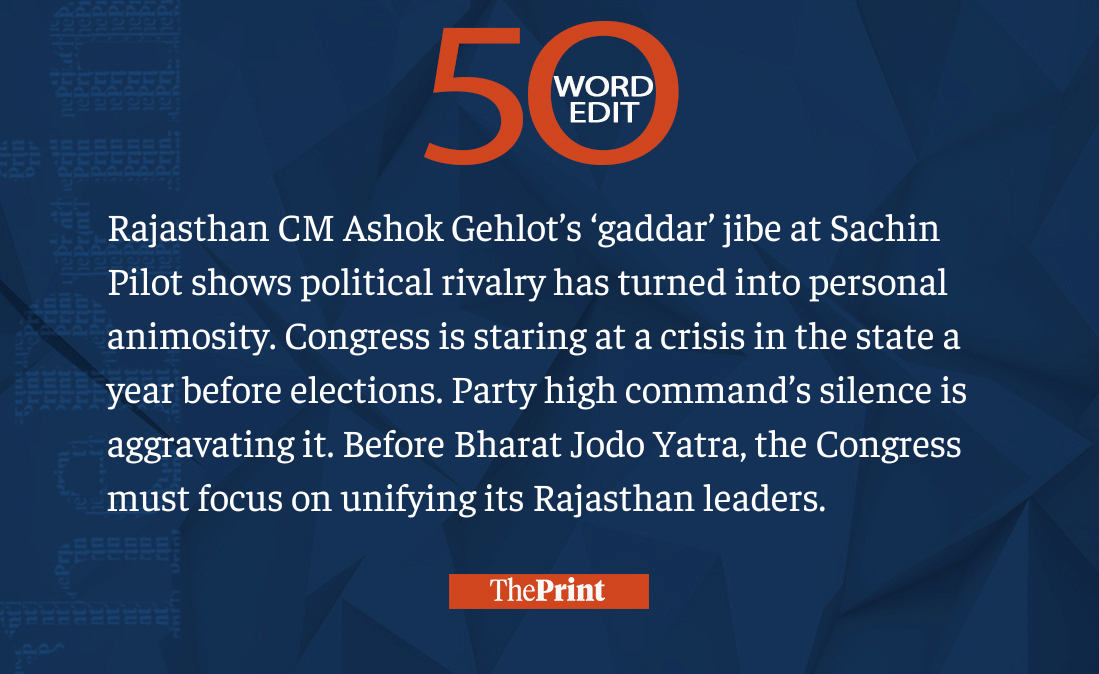 Gehlot-Pilot political rivalry has turned personal. Party high command’s silence worsening it