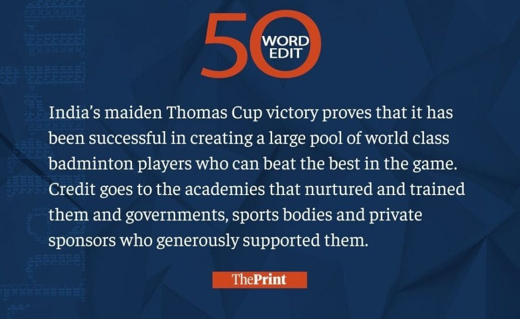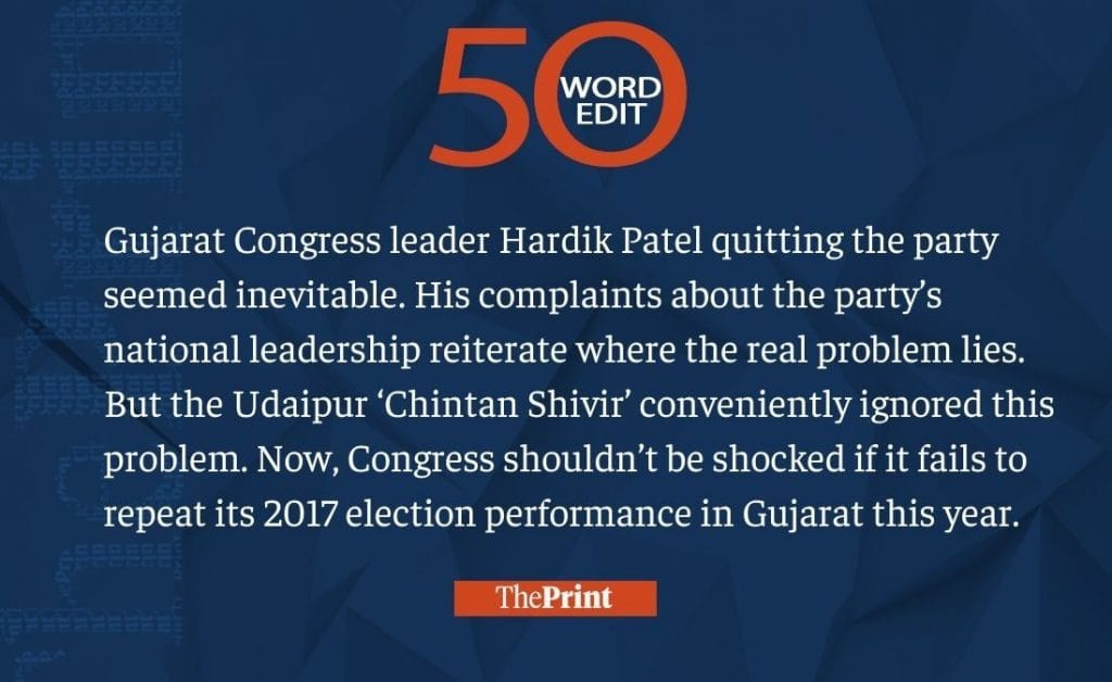This week, we saw Prime Minister Narendra Modi’s comments on regional languages, Hardik Patel leaving Congress, development in the Gyanvapi Masjid case and India’s Thomas Cup victory. Read our 50-word editorials on them and much more.