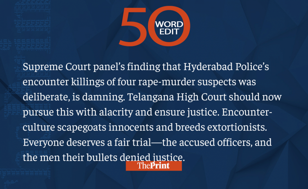 SC finding Hyderabad Police guilty of killing suspects is damning. Telangana HC must pursue it