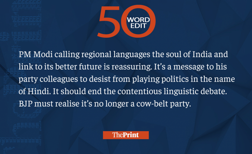 Modi calling regional languages India’s soul tells BJP to desist politics in Hindi’s name