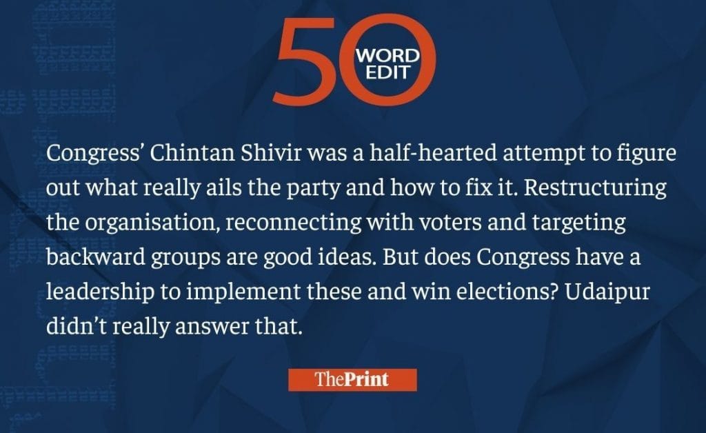 Chintan Shivir didn’t answer if Congress has a leadership to implement its ideas and win poll