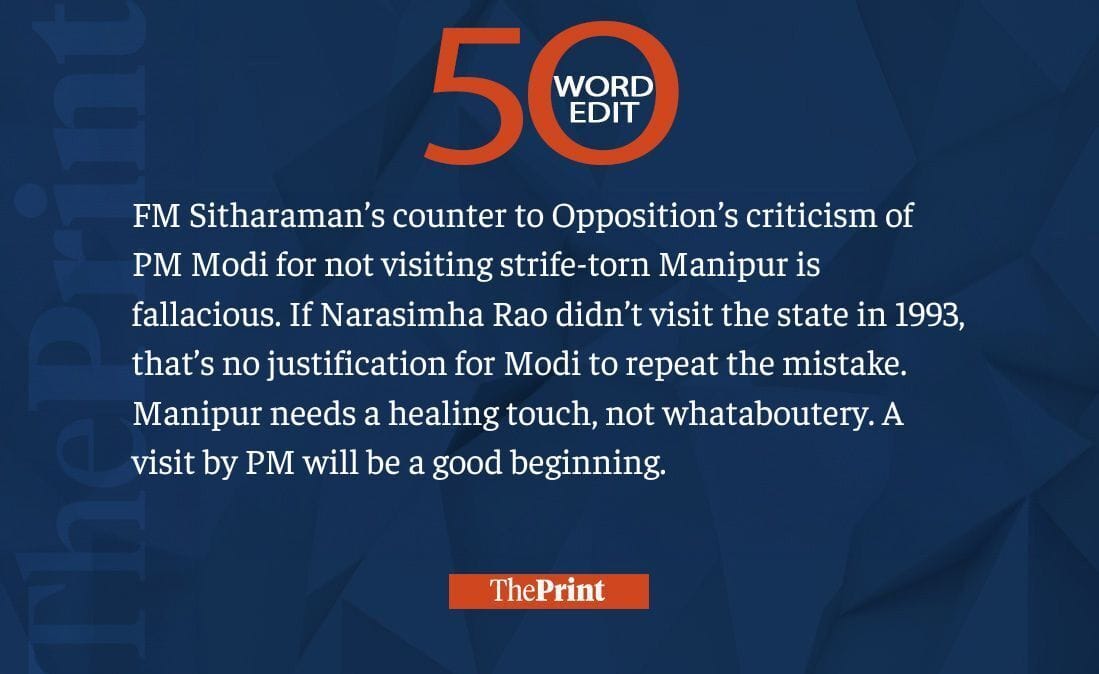 Sitharaman’s Narasimha Rao counter is flawed. Manipur needs a healing touch, not whataboutery
