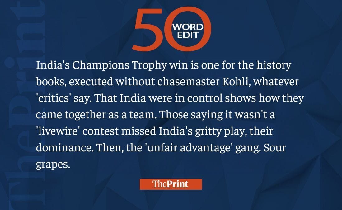 India’s Champions Trophy win is historic. They were in control, came together as a team