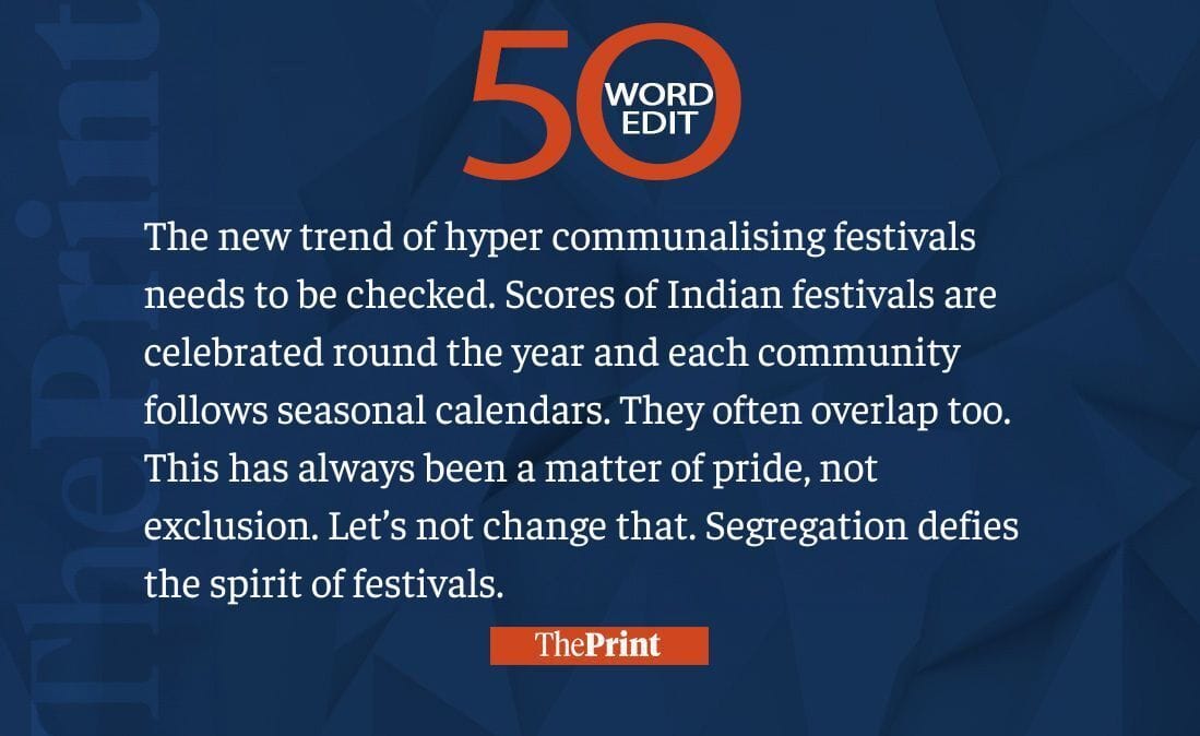 Don’t hyper-communalise Indian festivals. Segregation defies the spirit of celebration
