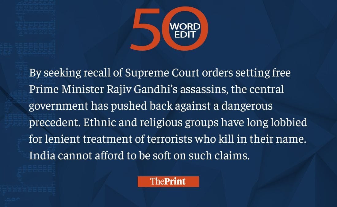Centre rightly pushing back in Rajiv assassination case. India can’t afford to be lenient to terrorists