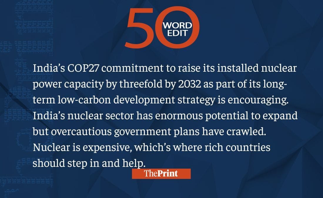 India’s COP27 commitment to hike nuclear power capacity encouraging. Rich nations must help