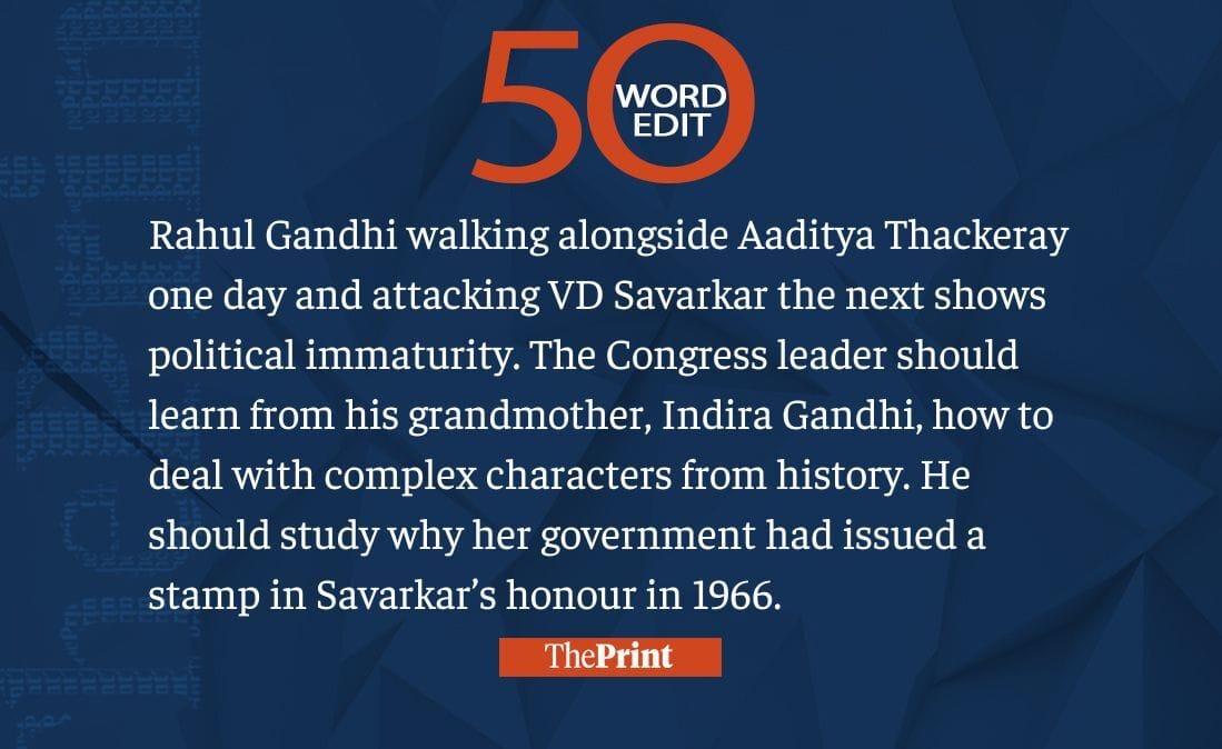 Rahul Gandhi should learn from Indira Gandhi how to deal with complex historical characters like Savarkar
