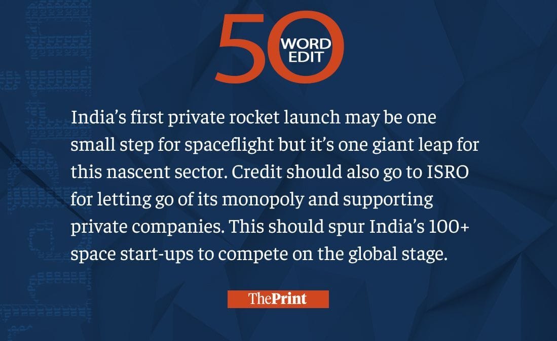 This week, we saw India’s first private rocket launch, a fresh controversy over religious conversion, and India’s commitment to raise its installed nuclear power capacity threefold by 2031. Read our 50-word editorials on them and much more.