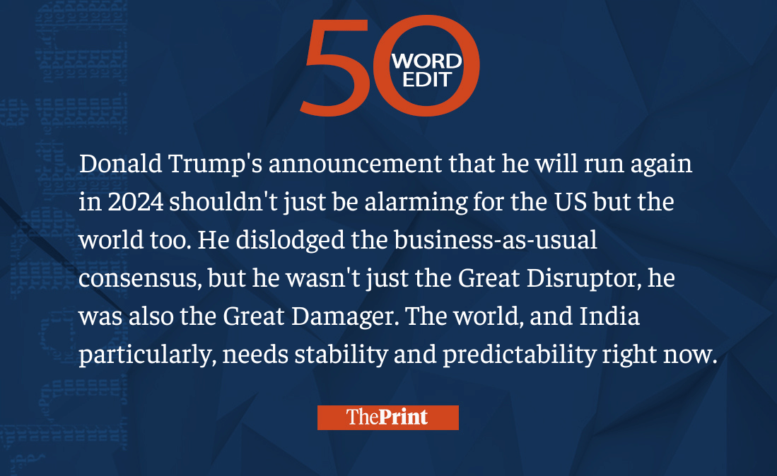 Trump running in 2024 again is alarming for all. India particularly needs stability