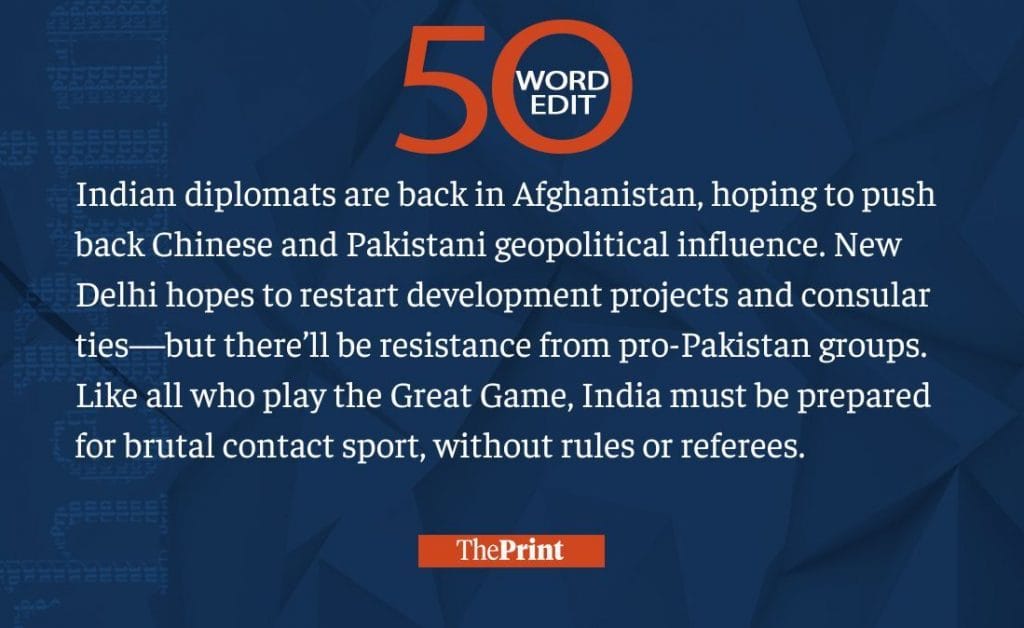 Indian diplomats must prepare for Pakistan, China in Afghanistan. It’ll be a brutal sport