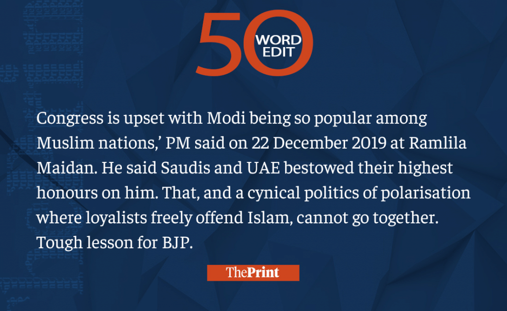 Modi’s popularity among Muslim nations and politics of polarisation can’t go together