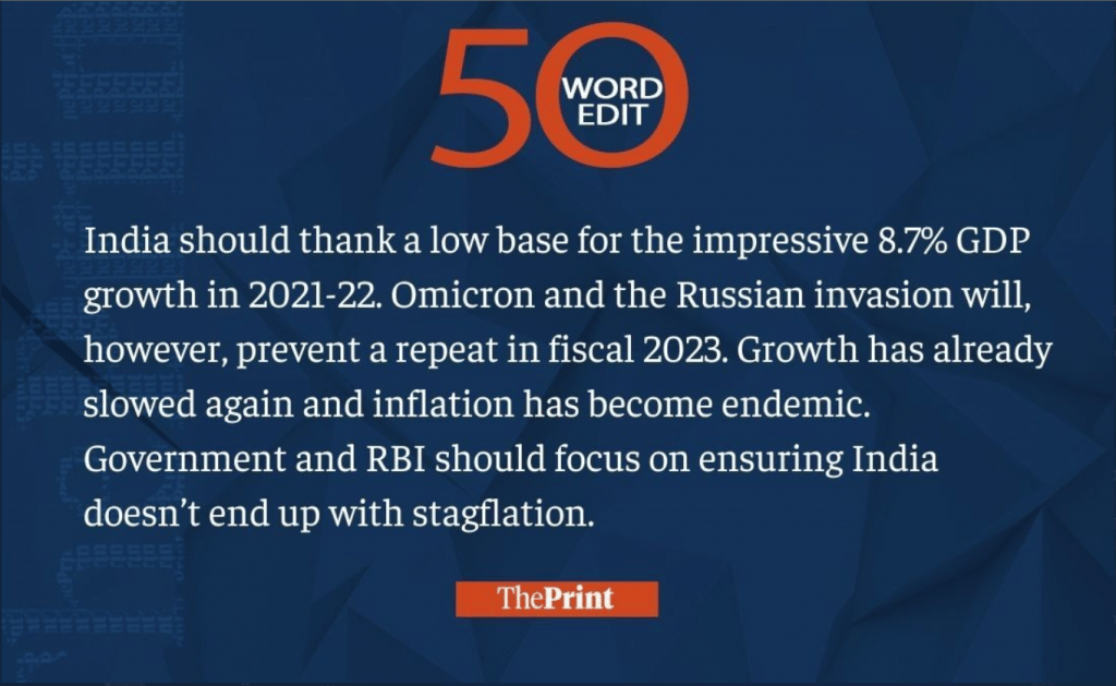 8.7% GDP growth won’t be repeated. Govt and RBI should focus on preventing stagflation