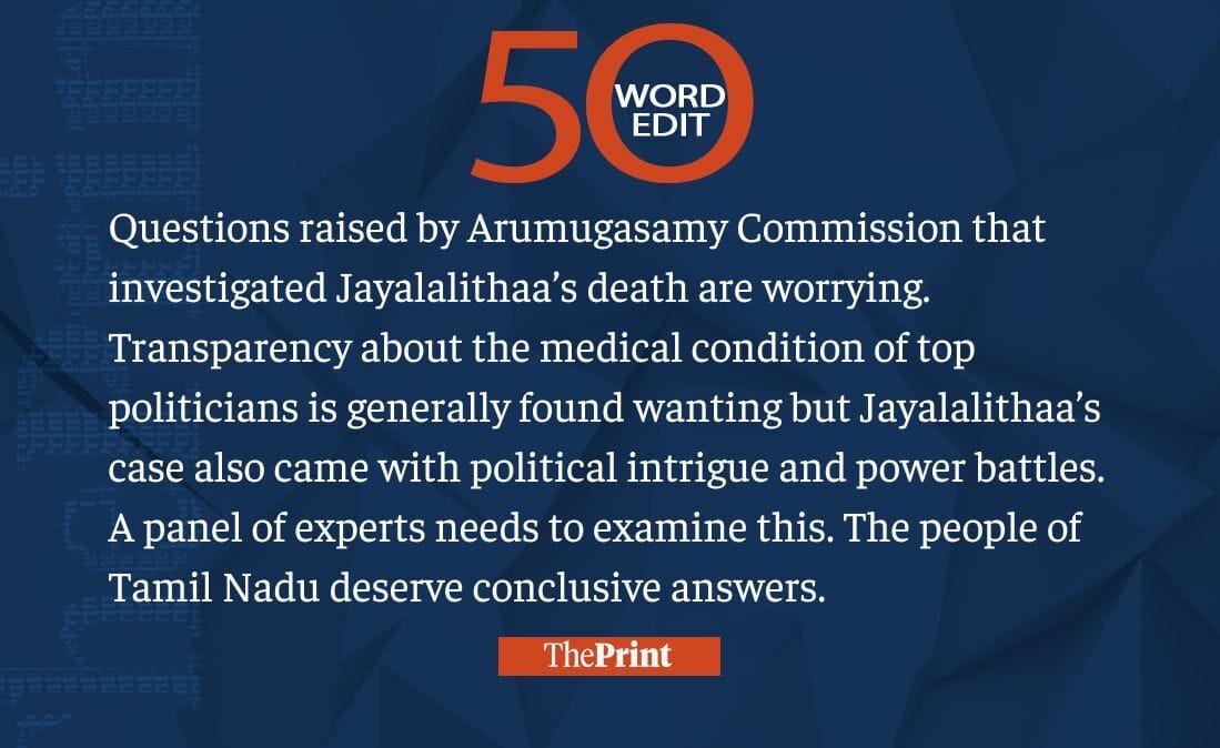 Questions on Jayalalithaa’s death probe are worrying, need to be examined by a panel of experts