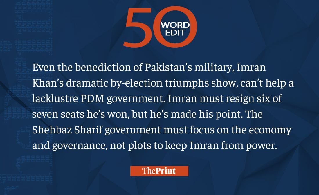 Imran Khan makes a point with bypoll win. Sharif must fix Pakistan’s woes, stop plotting