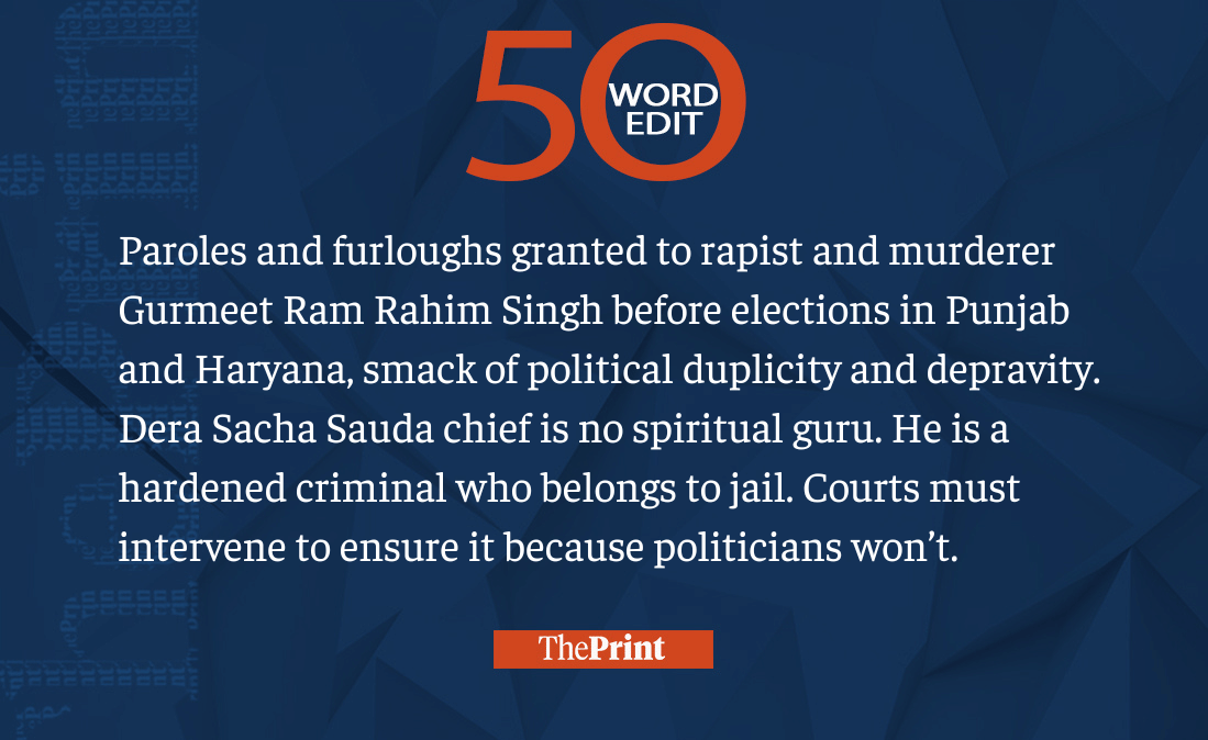Parole to Gurmeet Ram Rahim smacks of political depravity. Courts must undo this wrong