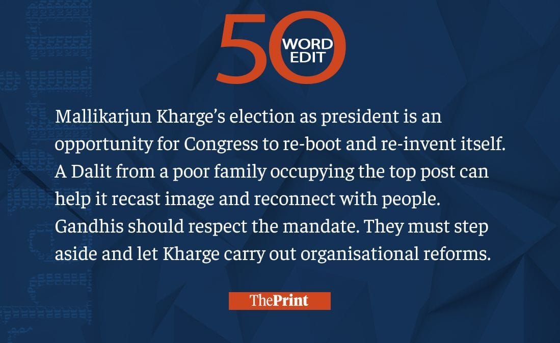 Kharge’s election as president is Congress’ opportunity to reinvent itself. Gandhis must step aside